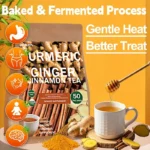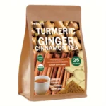Soothing herbal turmeric ginger tea good for inflammation or digestive health. Good to keep this tea around during flare-ups or stomach difficult days.
